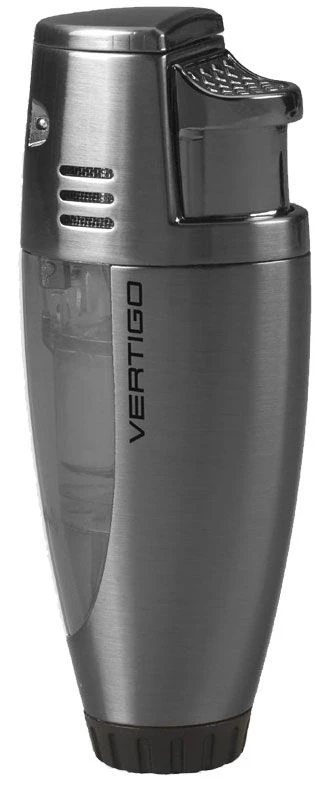 The Vertigo Atlantis lighter makes an excellent addition to any collection. From its powerful double torch flames, the easy to use trigger mechanism or the transparent fuel cell, this whole lighter is fun and easy to use. The gentle curved shape rests easy in the palm of your hand or pocket with a conferrable weight. Dark Gunmetal Finish; Transparent Grey Fuel Cell Single Action Ignition; Press Down on the Thumb Trigger to Ignite Sturdy metal and plastic construction 3.25″ x 1.25″ x 0.75″
