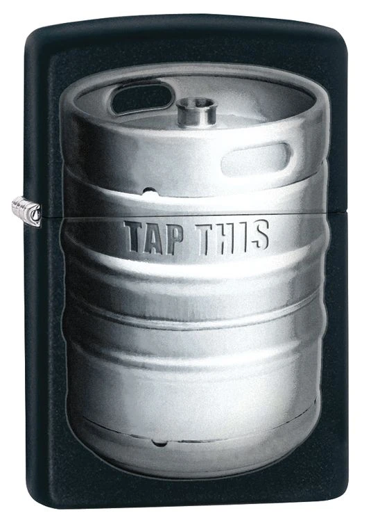 Are you always the first one to start the party? Then this is the lighter for you. This black matte lighter features the beginning of every party-the keg. Bring out your party animal when you flip the cap open and make that flint wheel produce the everlasting windproof flame. ‘Tap this’ and let’s get the party started! Approximate Dimensions: (H) : 2.25″ (W) : 1.52″ (D) : 0.52″ Approximate Weight: 1.94 oz Flint Lighter Uses Lighter Fluid (Ships Empty) Color Imaging Windproof Flame and Signature Zippo “Click” Made in the USA; Zippo Lifetime Warranty Comes in Zippo Branded Box If you would like your Zippo lighter to become a torch flame lighter, we recommend you buy a Z-Plus Zippo lighter insert. For cases and butane refills for your Zippo lighter, we recommend checking out our Zippo Accessories.